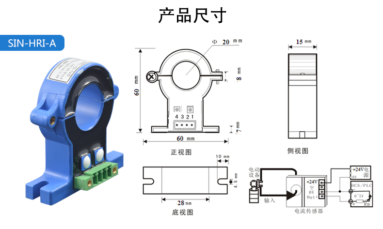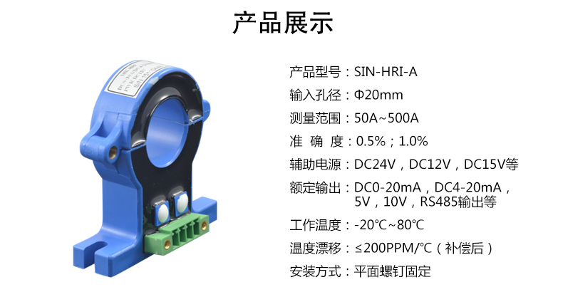電流變送器可以直接將被測主回路交流電流或者直流電流轉換成按線性比例輸出的DC4~20mA(通過250Ω 電阻轉換DC 1~5V或通過500Ω電阻 轉換DC2~10V)恒流環標準信號,連續輸送到接收裝置(計算機或顯示儀表)。